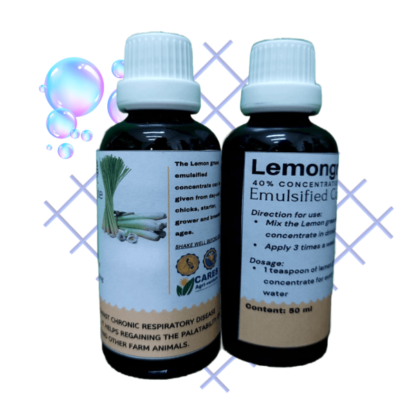 The CPU Lemongrass Emulsified Concentrate is proven effective against Mycoplasma spp and other pathogens causing common respiratory infections. Our studies showed that it helps to boost the immune system of the treated animal and enhance the meat and egg quality of native chicken. All you need to do is to put three to five drops of CPU Lemongrass Emulsified Concentrate in a liter of drinking water. Offer at least three times a week at one-day intervals. Best used on chicks under 30 days old.